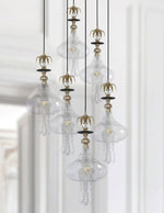Materials: Brass, Spun Metal, Handblown Glass, Crystal, Glass Beads